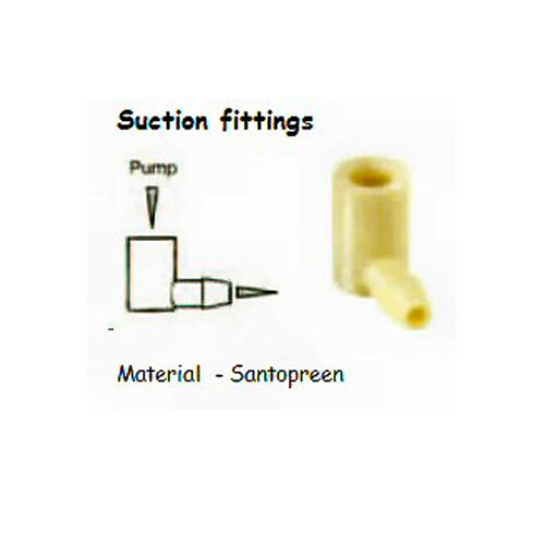 This fitting allows the connection of the suction feed to the pump to be at 90 deg to the axis of the pump